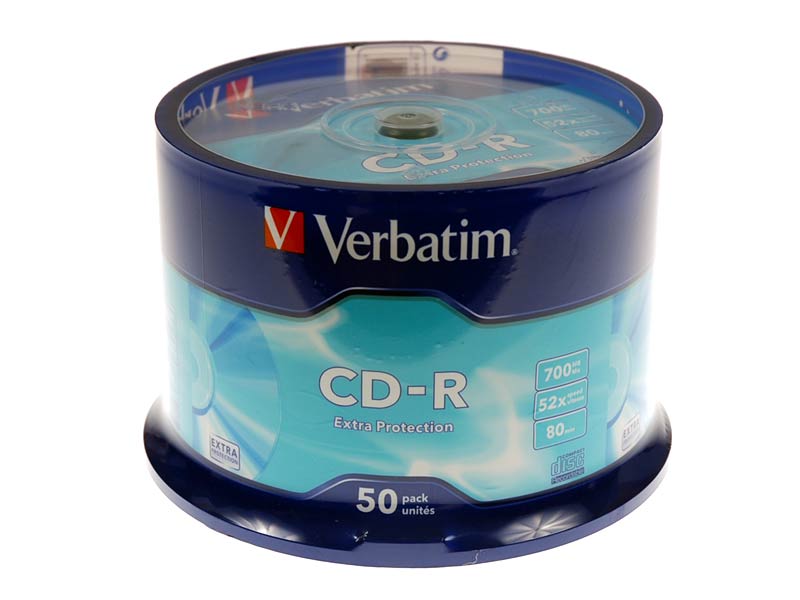 Dysk CD-R marki Verbatim jednokrotnego zapisu w opakowaniu typu spindel.